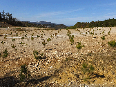 | 松の木がずらり~っと植えてあった それを見届けたので、滝呂へ下りることにした |