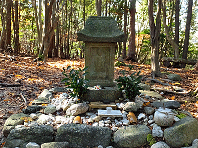 | ↑ 左は、草刈りがしてある 掃除をしたりお供えを持ってくるのは、こっちからだね |
