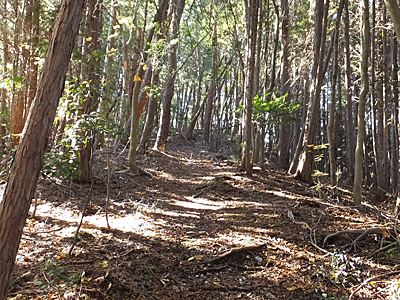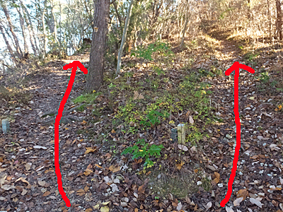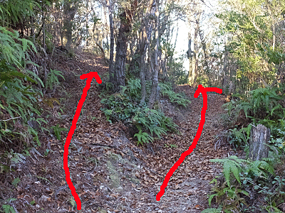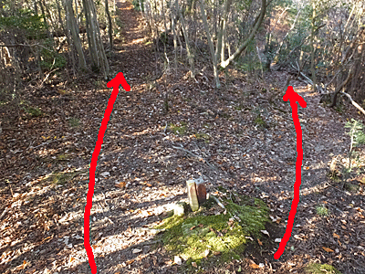 | ここから左折する道もあったが、元の分岐まで戻って 三角点を探しながら歩いた (帰りは、その道を通った) |