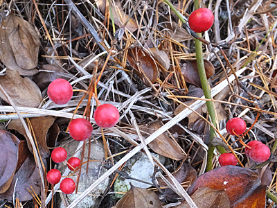 | サルトリイバラ:サルトリイバラ科 赤い実を見て、少しホッとし・・・ |