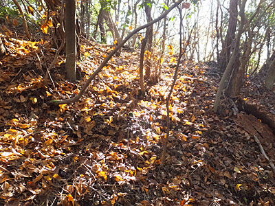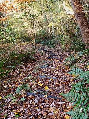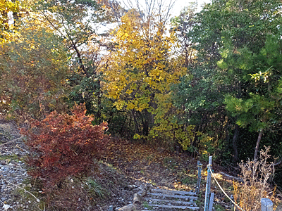 | 歩きにくい急な坂道を登っていくと・・ | |