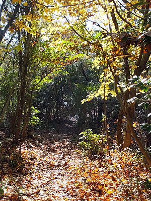 | 落ち葉いっぱいの道をサクサク歩いて・・・ | |