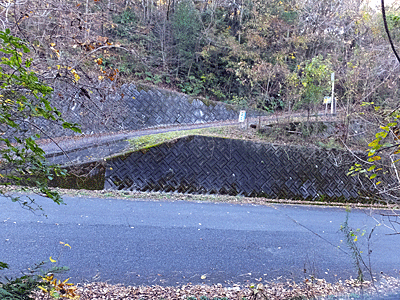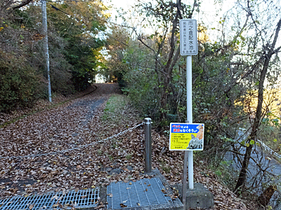 | 車道に下り、向こう側の水道タンクへ行く坂道を登る |