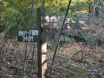 | こんな標識が立っていたが、 市之倉三丁目へ行く道は、笹に阻まれて ちょっと通りたくない・・・の感がする道になっていた |