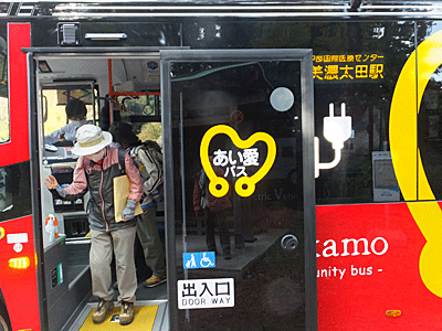 | 多治見駅8:22発の太多線に乗り、 美濃太田駅8:54着 電車組は4名 北口へ出て、「3公園連絡線」9:08発に乗車 美濃加茂市のあちこちへ寄りながら、 ( 今年の1月に開院された大きな医療機関 「中部国際医療センター」が印象的だった) 「みのかも健康の森園内バス停」に9:39着 |