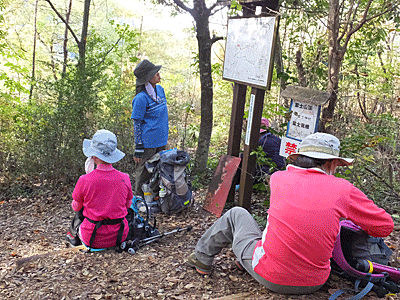 | 各自、適当な場所を探して腰を下ろした その間に、高木山へ登る、「”楽な道”希望者」がいないか 聞いて回った 希望者はあったが、1人ではちょっと・・・なので 結局全員予定通りのコースとなった |