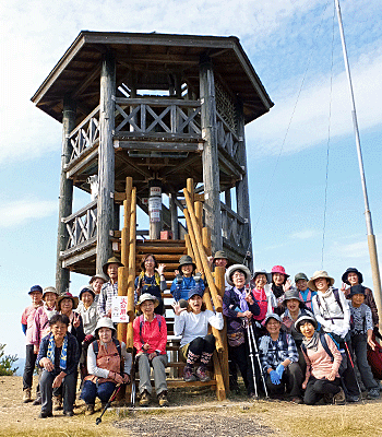 | 全員集合写真 高木山からは3本の下り道がある どれにする?と希望を聞いてまわった |