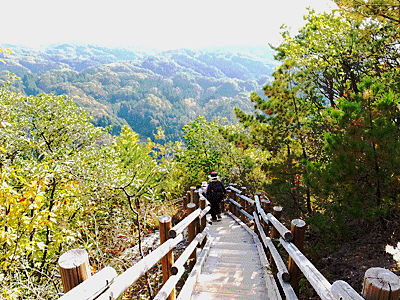 | せっかく登った見晴岩だが いったん少し下って、 また階段・階段・階段と、 山頂まで何度も階段が続いた |