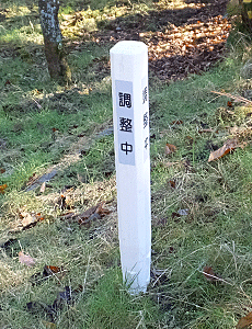 | 前回来た時より、草丈が伸び、「荒れている」感 「調整中」の杭があちこちに立っていた |