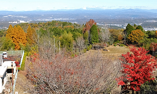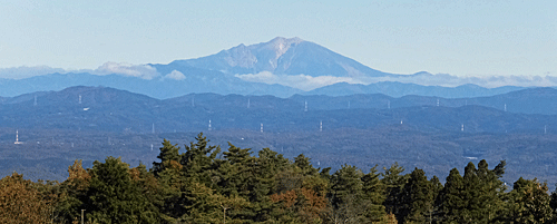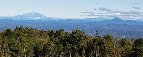| 遠くに、御岳(左)と、笠置山(右の三角の山) | |