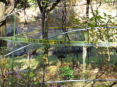 | ロープや、「立入禁止」のテープが張られていた ↑ ↓ |