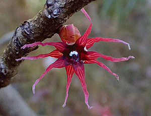 | マルバノキ(ベニマンサク):マンサク科 咲いている頃・・・だと思ったが、 やっぱり咲いていた 花数は少なかった・・・ 花びらがたくさんあるように見えるが、 2つの花が背中合わせにくっついているため、多く見える こんな感じ ↓ ![]() 1つの花に花びらは5枚 ヒトデのように見える |