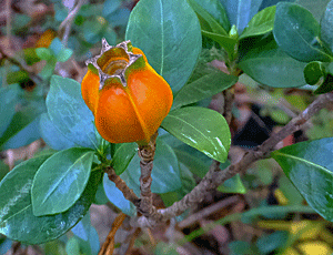 | クチナシ:アカネ科 実は黄色い着色料として、たくわんや栗きんとん、 芋きんとんなどの着色に使われる |