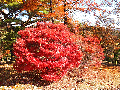 | 黄葉・紅葉も青空に映えてきれい〜 |
