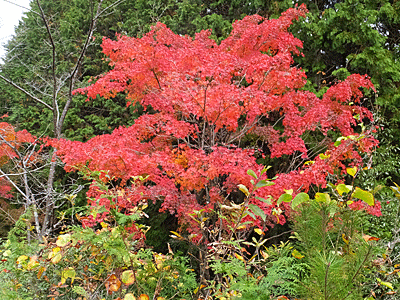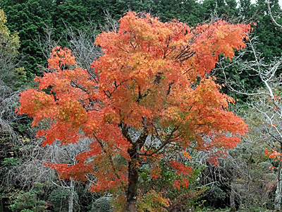 | 日陰だと、地味〜な色になってしまう 同じ幹から出ている葉っぱなのに、 緑と赤がある まず、大洞池方面のAゾーンへ |