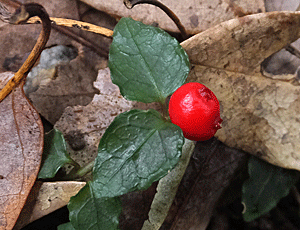 | ツルアリドオシ:アカネ科 赤い実はよく目立つ |