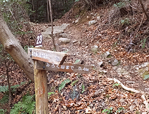 | 急な坂道を下りていくと、 林道に出る 「指標.23」 |