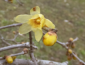 | ロウバイ・ロウバイ科 まだ、数えるほどしか咲いていなかった しかも、咲いてから低温にあったのだろう 茶色になっている花もあった |