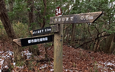 | 「指標.34」 左折すると、廿原との分岐 今日は右折して植物園を目指し 帰りはここから廿原へ行く予定 |