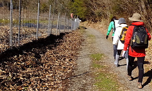 | 休憩舎で、昼食休憩20分ほどの後、出発 13:25 ツバキ園は、まったくといって 花は咲いていなかった |