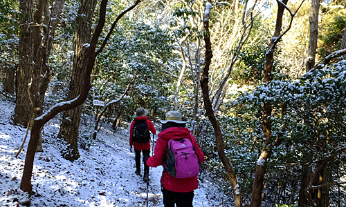 | 今日のコース初めて・・・が3名 経験が豊かな人に先頭を歩いてもらい 私はいつものように最後から 雪の中を歩くの初めて・・・という声もあった |