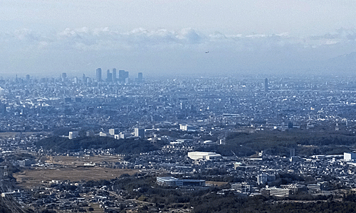 | 休憩舎から名古屋駅前方面を望む 反対側の御嶽・恵那山方面はぼ〜んやり 1150頃山頂発 |