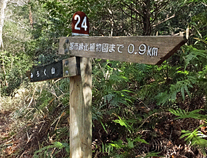 | 道標No.24通過 12:17 植物園まで「あと900m」 時々ショートカットをしながら、 植物園の休憩舎&トイレに着 ↓ 12:40 |