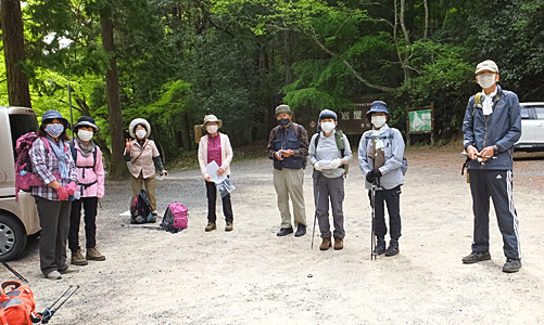 | 雨のため1週間延期したので、参加者は半減して 今日は9名 ミーティングの後、これから出発 9:03 |