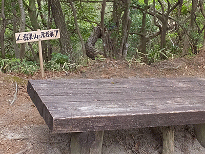 | 岩巣山展望台で 7名グループは、ここでランチ ベンチや岩の上で座れたとか |