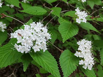 | コバノガマズミ:ガマズミ科 真っ白い小さい花のかたまりがあった カメラを取り出す余裕が出てきてパチリ |