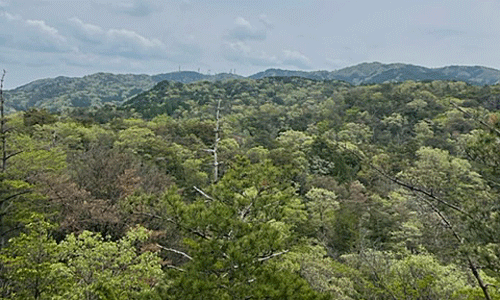 | 岩巣山展望台から 『春の山 萌黄色 綺麗だね〜』 |