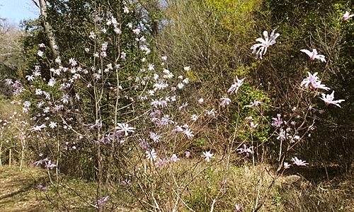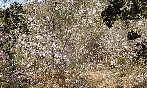 | 2週間前(2022/3/24)に訪れた時は、 シデコブシは固いつぼみばかりだった 今日は、花びらが茶色になり始めた花もちらほら 2〜3日遅かった感じ・・・ |