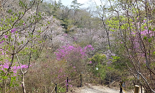 | これらの数でいうと、 5本よりは10本に近い数なので、 コバノミツバツツジだと考えられる また、コバノミツバツツジは、ミツバツツジより 葉っぱが小さいという意味だが、 一目で見て分かるほどではないので、 判断材料にはならない・・・ |