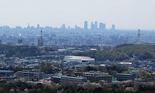 | 西高森山山頂標識と、展望 今日はぼ〜んやりして鈴鹿方面は見えなかった |