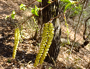 | 大きくて長いのが、雄花 その下にあってぶら下がっているのが雌花 |