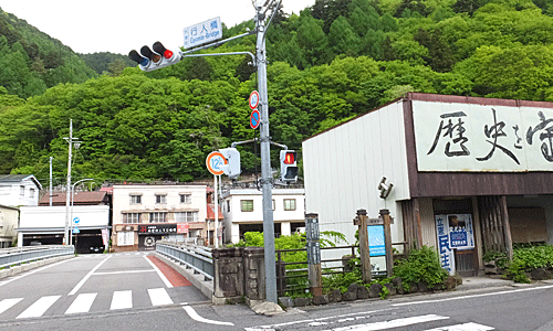 | 木曽福島駅7:42着〜7:52発 駅前の横断歩道を渡って、右折 歩道を歩いて行人橋(ぎょうにんばし)へ |