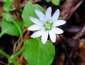 | ミヤマハコベ:ナデシコ科 花びらは10枚のように見えるが、ほんとは5枚 深く切れ込んでいるので、10枚に見える |
