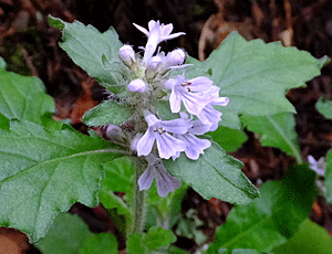 | ラショウモンカズラ:シソ科 下りは足元注意なので、 カメラを取り出す余裕もなく 各自の安全スピードで 1歩1歩気を付けながら下りた |