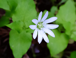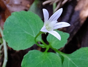 | タニギキョウ:キキョウ科 上の、ヤマハコベと似ているが、 花びら5枚でも切れ込んでいない 湿っぽい所が好きな花 |
