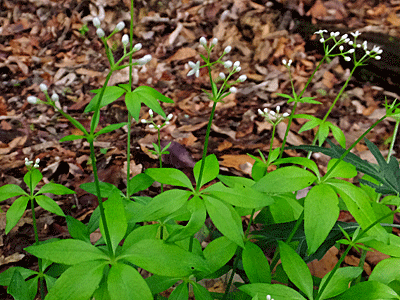 | クルマムグラ:アカネ科 6枚の葉が輪生している 花はとても小さい |
