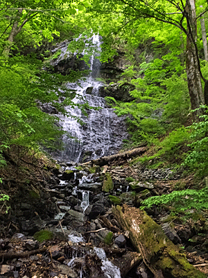 | 権現滝下にある橋から、滝を見上げた 今日は水量が多くて豪快〜 |