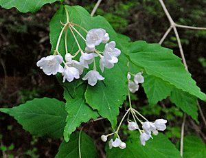 | オトコヨウゾメ:レンプクソウ科 頭より高い所に咲いていた 花が垂れるのが特徴 一つ見つけると、次々に見つけることができた この高度が好きらしい 次にまたこの花に出会ったとき、 「なんという名前だっけ?」 一度聞いただけで覚えるなんてことは無理 「オトコヨウドメ?」「オトコヨウズミ?」 「オトコヨウナシ?」・・・などと言って笑い合っていた |