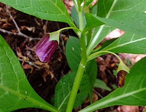 | ハシリドコロ:ナス科 1つぐらい花が咲いているかと期待していたが ゼロ・・・ 残っているのは、萼だけ(緑色の部分) ↑ |