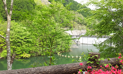 | 多治見7:00発 岩村町内のトイレに寄り 岩村ダム、8:15着 先客は1台のみ ダムの周りは鮮やかな新緑〜 |
