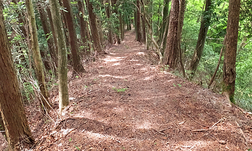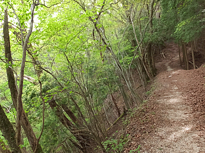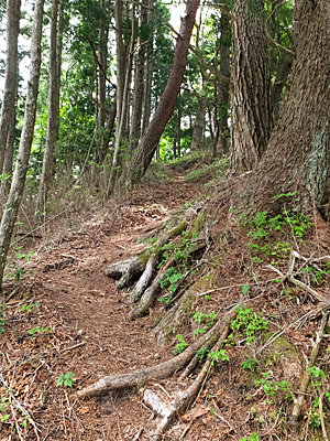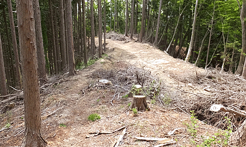 | もうここからは、以前歩いた登山道になった 約20分の間だったが、長く感じた その後、もう林道工事場所に出会うことなく 登山口まで行けた |