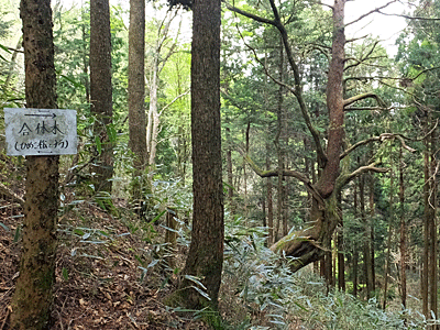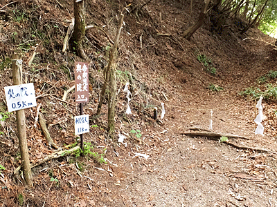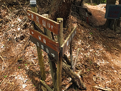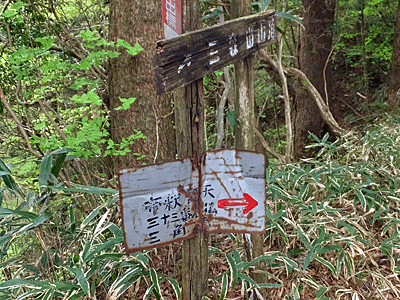 | 三森山分岐 9:20 三森神社と展望台へは、直進 三森山や奥の院や帝釈梵天へは ここまで戻ってきてから曲がる |