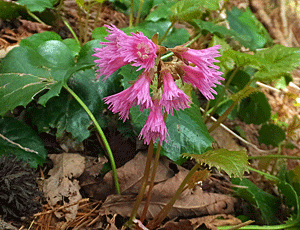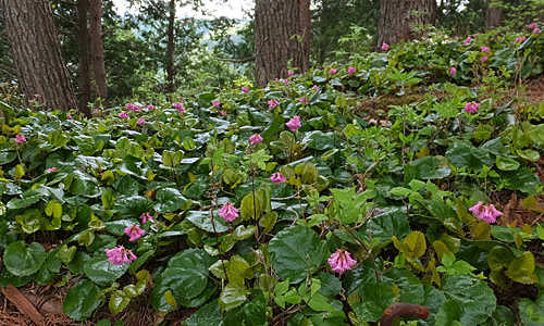 | イワカガミ:イワウメ科-1 あった〜 咲いてる〜 イワカガミの群落〜 |