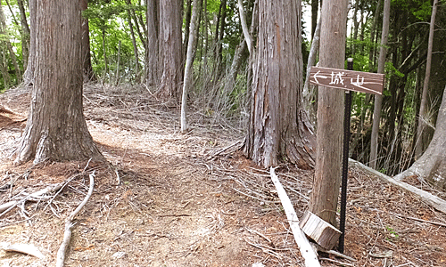 | 「城山」の標識 ずんずん進んで行くと・・・ |