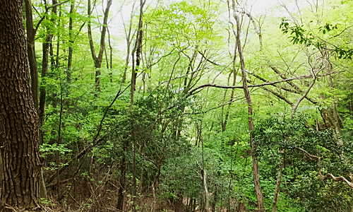| 林道へ出た 9:13 舗装された林道を突っ切って向こう側へ |