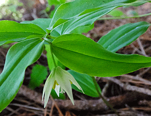 | チゴユリ:イヌサフラン科-2 あら、双子ちゃんだ! 近くのチゴユリも皆、双子だった 種が落ちて、また双子ができたのかも |